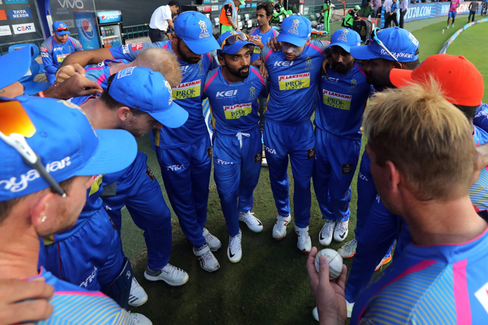 ரஹானே(கேப்டன்), பட்லர்(விக்கெட் கீப்பர்), ஸ்டீவ் ஸ்மித், சஞ்சு சாம்சன், மனன் வோரா, கிருஷ்ணப்பா கௌதம், பென் ஸ்டோக்ஸ், ஷ்ரெயாஸ் கோபால், இஷ் சோதி, உனாத்கத், குல்கர்னி.