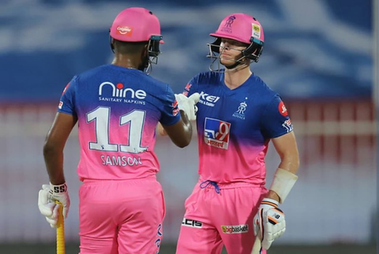 ராஜஸ்தான் அணியின் தொடக்க வீரராக கேப்டன் ஸ்டீவ் ஸ்மித்துடன், அறிமுக இளம் வீரர் யஷஸ்வி ஜெய்ஸ்வால் களமிறங்கினார். ஆனால் யஷஸ்வி ஜெய்ஸ்வால் வெறும் 6 ரன்களில் ஆட்டமிழக்க, அதன்பின்னர் களத்திற்கு வந்த சஞ்சு சாம்சன், ஷார்ஜாவில் சிக்ஸர் மழை பொழிந்தார்.