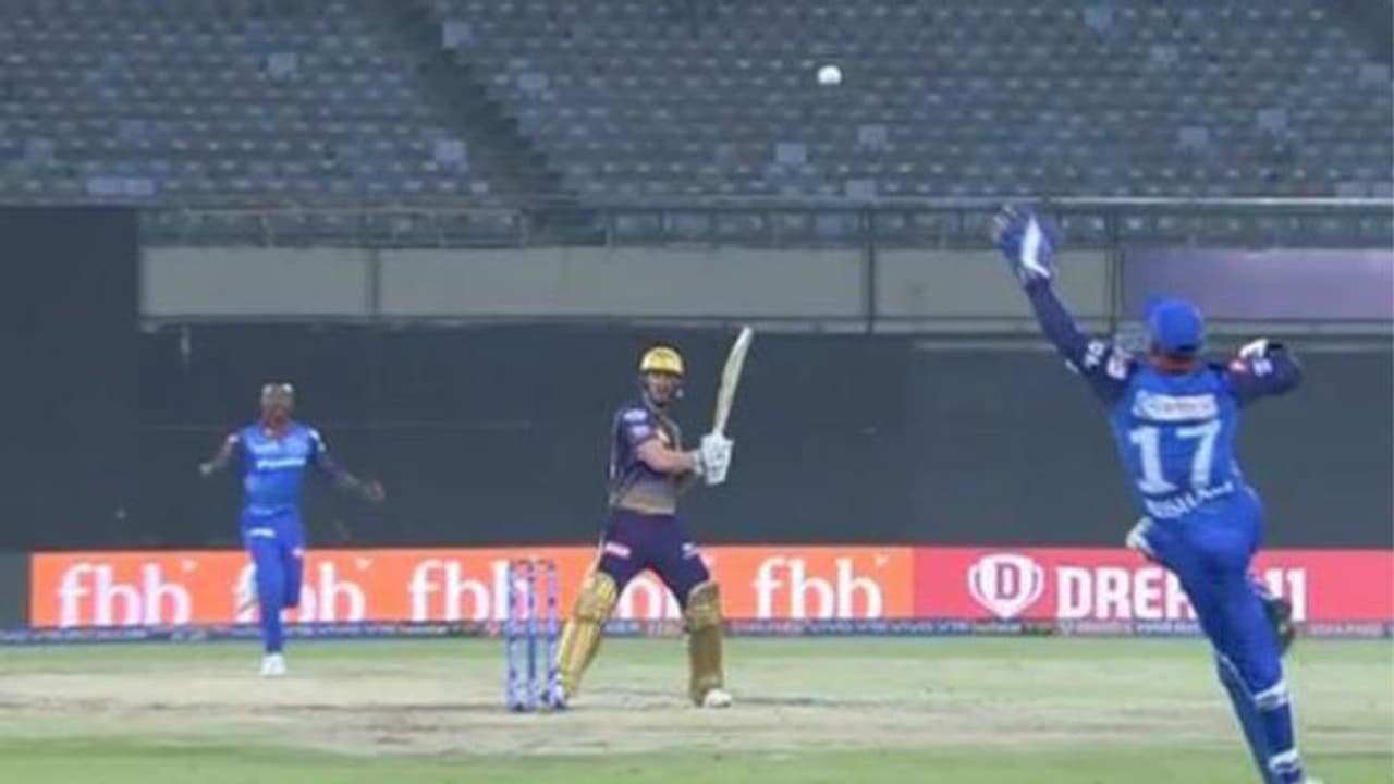 கேகேஆர் அணிக்கு எதிரான நேற்றைய போட்டியில் ரிஷப் பண்ட் ஒரு அபாரமான கேட்ச்சை பிடித்தார்.