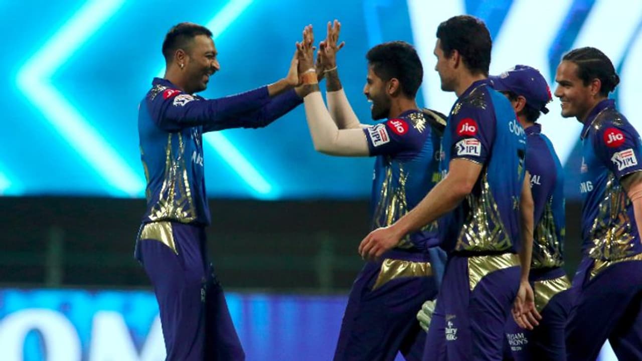 ஆனால் கேகேஆர் அணி பேட்ஸ்மேன்கள் சரியாக ஆடவில்லை. கேகேஆர் அணியின் தொடக்க வீரர் திரிபாதி 7 ரன்களிலும், நிதிஷ் ராணா 5 ரன்களிலும், தினேஷ் கார்த்திக் 4 ரன்களிலும் ஆட்டமிழக்க, கில் 21 ரன்களில் ஆட்டமிழந்தார். ஆண்ட்ரே ரசலுக்கு அருமையான பவுன்ஸர் போட்டு 12 ரன்களில் வீழ்த்தினார் பும்ரா.
