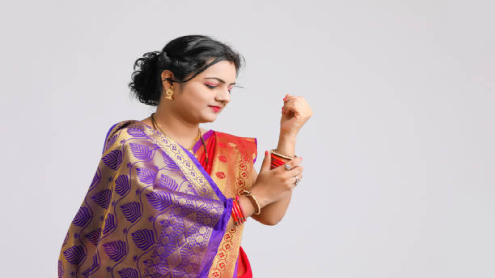 உங்கள் சரும நிறத்திற்கு ஏற்ற வண்ணங்களைத் தேர்ந்தெடுப்பது புடவைக்கு ஒரு கூடுதல் அழகைக் கொடுக்கும்.