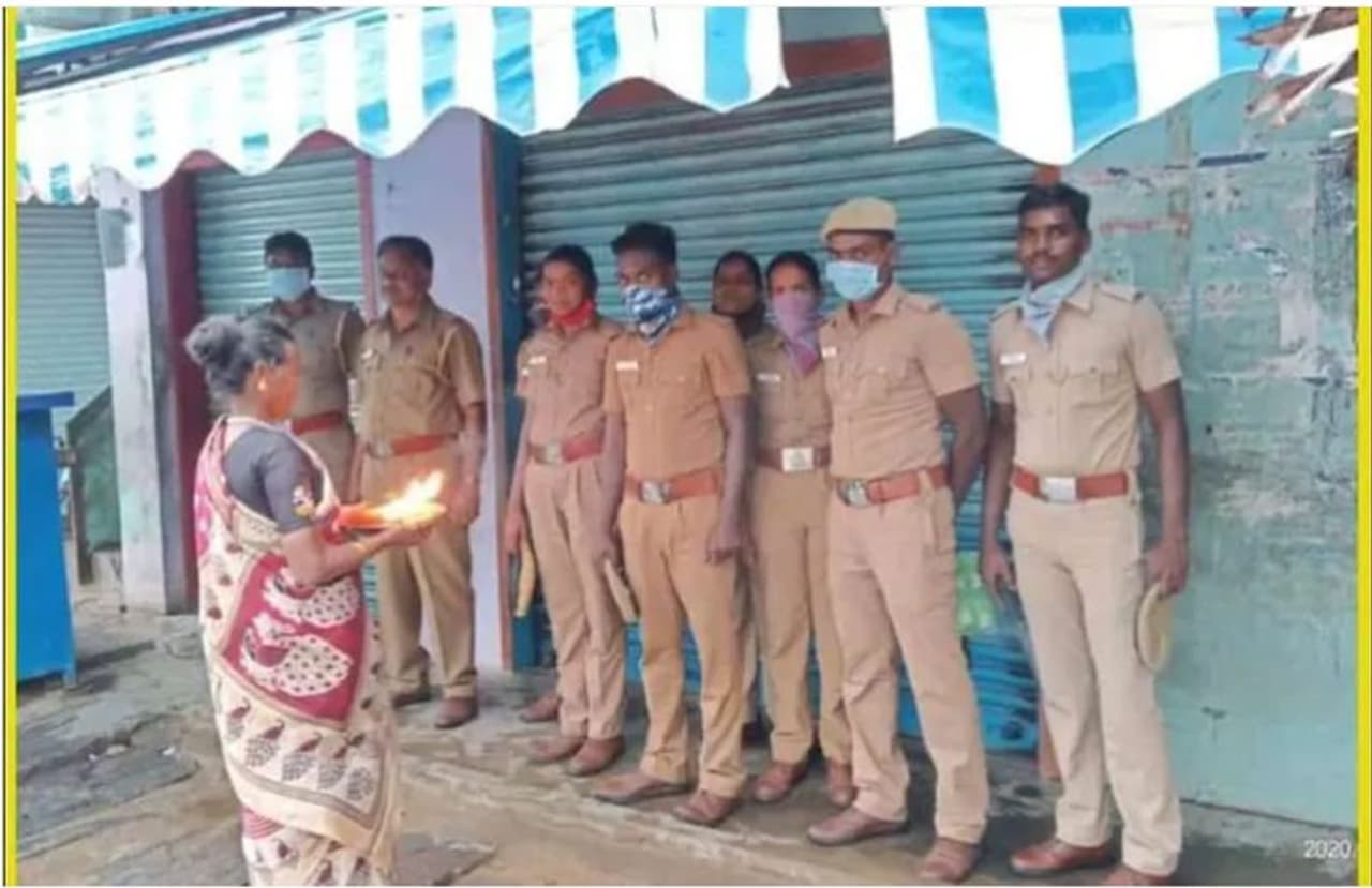 ஆக மொத்தத்தில் ஓய்வு இல்லாமல் அனைத்தையும் பொறுத்துக்கொண்டு மக்கள் பணியாற்றவும் காவலர்களுக்கு ஆரத்தி எடுத்து வாழ்த்து தெரிவித்து உள்ளார் ஓர் மூதாட்டி.