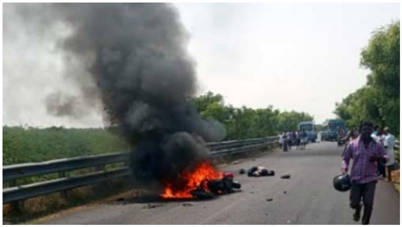 அப்போது புதுக்குடி என்ற பகுதியில் சென்று கொண்டிருந்த போது எதிரே வேகமாக வந்த வேன் எதிர்பாராத விதமாக மோதியதில் இருசக்கர வாகனம் தீப்பிடித்து எரிந்தது. இதில் இருவரும் சம்பவ இடத்திலேயே தீயில் கருகி உயிரிழந்தனர். இதுகுறித்து காவல் நிலையத்திற்கு புகார் அளிக்கப்பட்டு தீவிர விசாரணை மேற்கொள்ளப்பட்டு வருகிறது. இந்த விபத்தின் காரணமாக திருச்செந்தூர் திருநெல்வேலி நெடுஞ்சாலையில் போக்குவரத்து நெரிசல் ஏற்பட்டது.