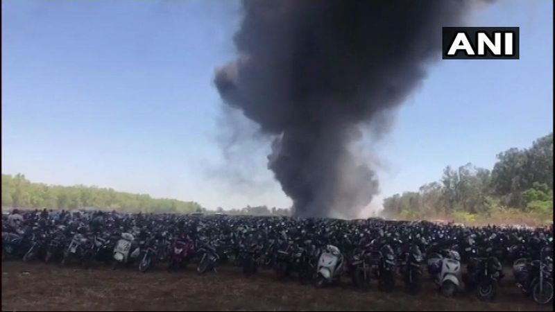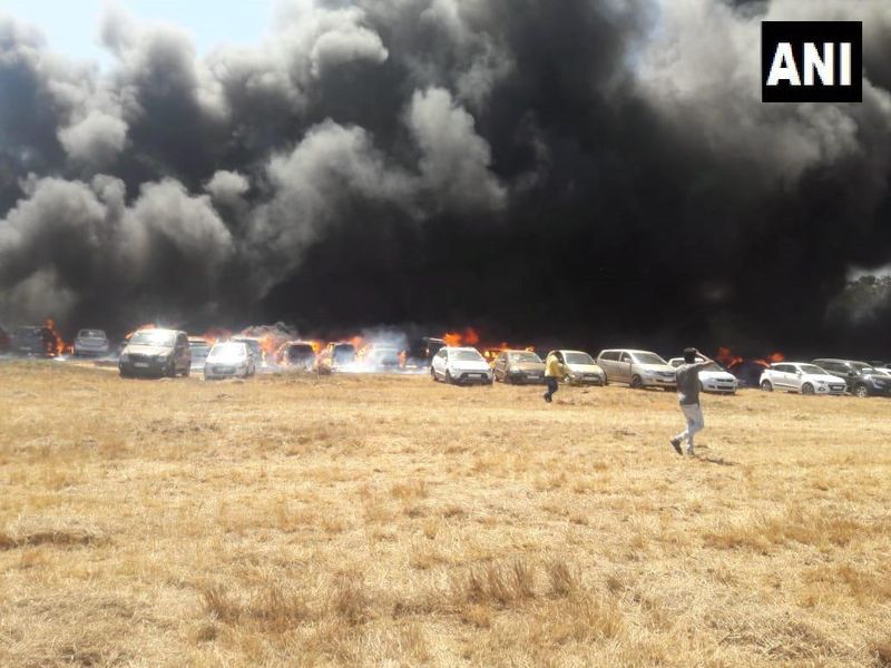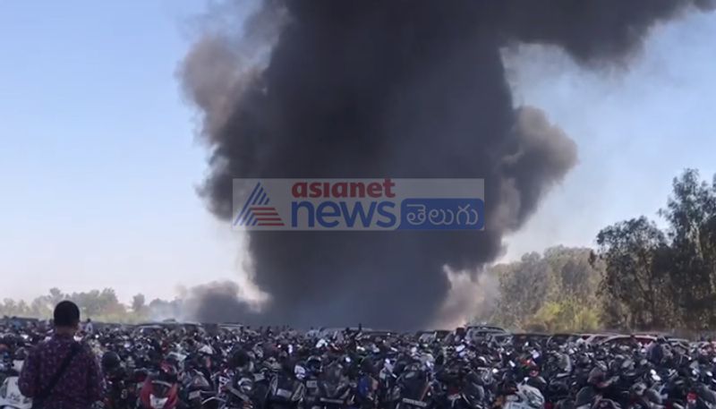 பெங்களூருவில் விமான கண்காட்சி நடைபெறும் இடத்திற்கு வெளியே நிறுத்தி வைக்கப்பட்டு இருந்த பல கோடி ரூபாய் மதிப்பிலான கார்கள் மற்றும் 200 கும் மேற்பட்ட இரு சக்கர வாகனங்கள் தீயில் கருகி நாசமாயின.