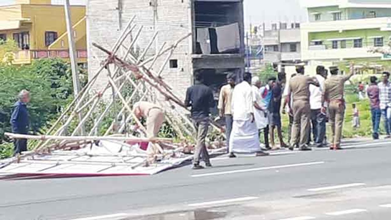 இந்த ஒரு பரபரப்பான சூழ்நிலையில், வேலூர் மாவட்டம் காவேரிப்பாக்கத்தில் சென்னை-பெங்களூரு தேசிய நெடுஞ்சாலை ஓரம் திருமண வரவேற்பு நிகழ்ச்சிக்காக வைக்கப்பட்டிருந்த பேனர் விழுந்து டாஸ்மாக் ஊழியர் ஒருவர் காயமடைந்துள்ள சம்பவம் மேலும் அதிர்ச்சியை கூட்டியுள்ளது.