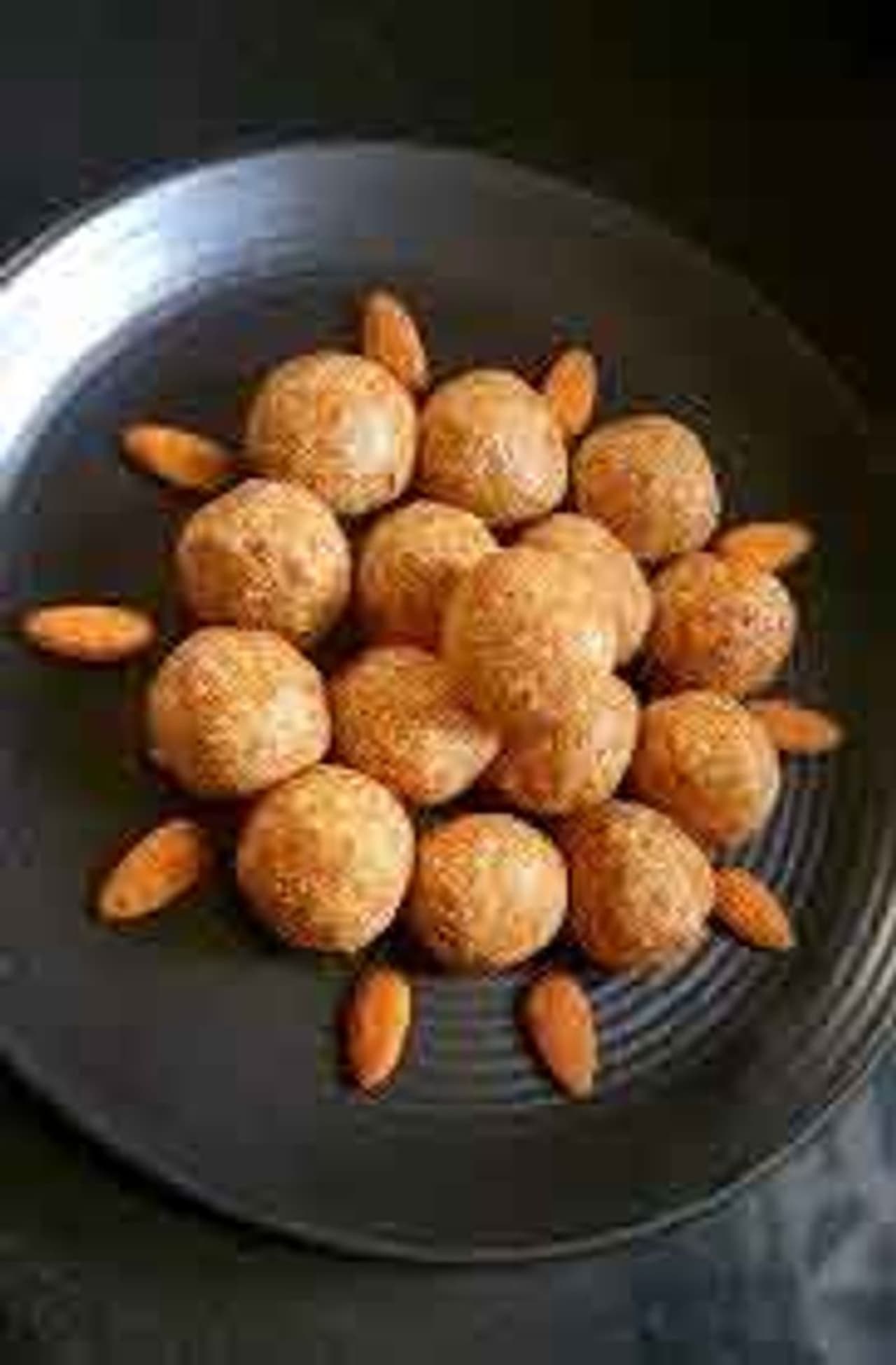 5. அரைத்த இந்த பொடியை ஒரு தட்டில் கொட்டி, கட்டிகளை உடைத்து விட்டு, உங்கள் கையை கொண்டு சிறிய சிறிய உருண்டைகளாக பிடித்தால் அழகான லட்டு நமக்கு கிடைத்துவிடும்.