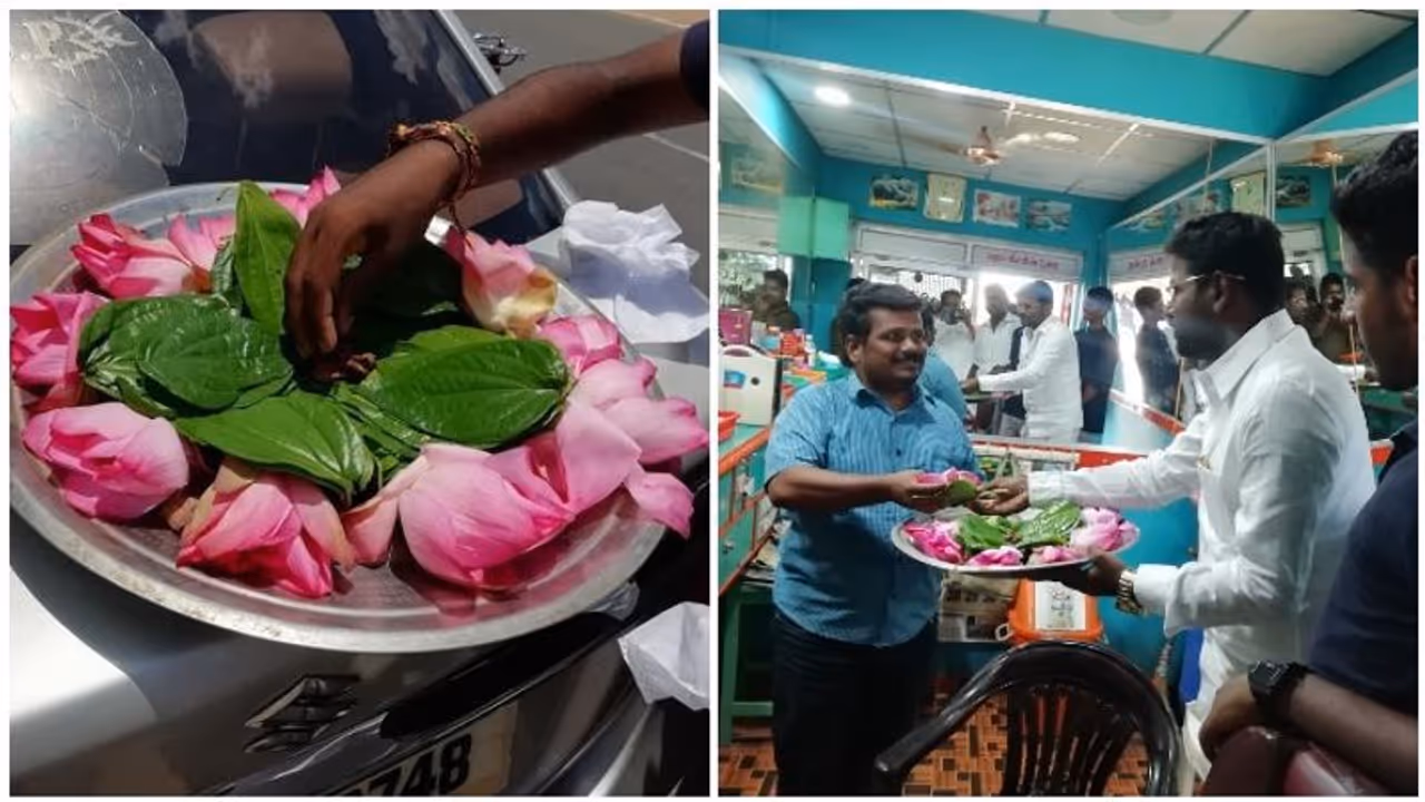பாஜக இளைஞர் அணி செயலாளரான பாண்டியன் தன் கையில் தாம்பூல தட்டுடன் தாமரை மலர்களையும் வெற்றிலை பாக்கையும் வைத்து வீடு வீடாக சென்று தெருத்தெருவாக சுற்றி மக்களிடம் தாமரை மலரை கொடுத்து, கண்டிப்பாக தாமரைக்கு வாக்களியுங்கள் என்று நம்பிக்கையுடன் வாக்கு சேகரித்து வருகிறார்.
