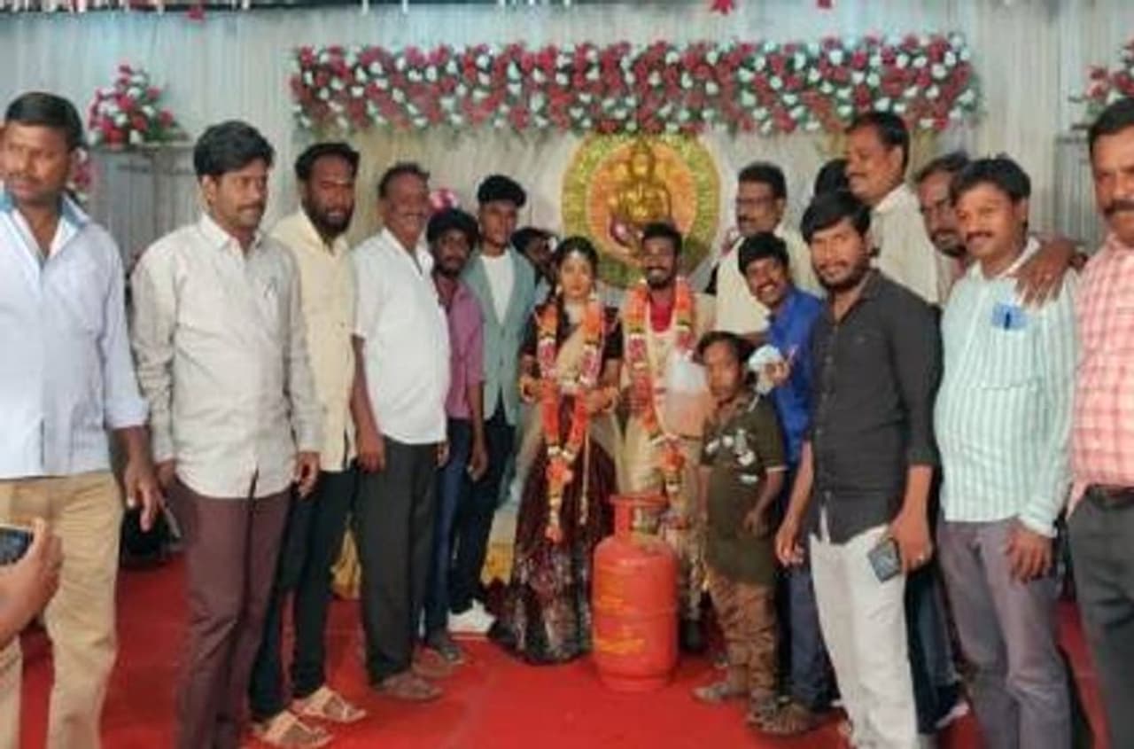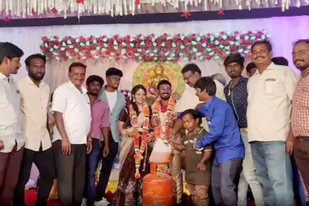 சென்னை மதுரவாயலைச் சேர்ந்த கார்த்திக் - சரண்யா ஆகியோரின் திருமண வரவேற்பு நிகழ்ச்சி மதுரவாயலில் உள்ள தனியார் மண்டபத்தில் நடைபெற்றது. இதில் பங்கேற்ற மணமகனின் நண்பர்கள் புதுமண தம்பதிக்கு 5 லிட்டர் பெட்ரோல், சின்ன வெங்காய மாலை, சமையல் எரிவாயு ஆகியவற்றை பரிசாக வழங்கி, விலையேற்றத்தை சமாளிக்க இப்பவே பயிற்சி கொடுத்துள்ளனர்.