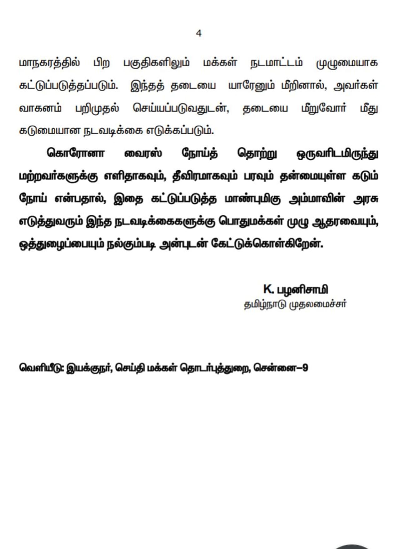 5 மாநகராட்சியில் முழு ஊரடங்கு..! சென்னை, மதுரை, கோவை, திருப்பூர் சேலத்தில் பயங்கர கட்டுப்பாடு..!