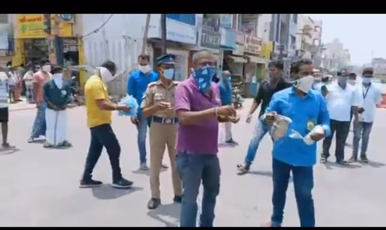 அப்போது சித்திரகுப்தன் எமன் ஆகிய வேடமணிந்த இருவர் அத்தியாவசிய தேவையின்றி அந்த வழியே இருசக்கர வாகனத்தில் வந்தவர்களை வழிமறித்து அரசு தடையுத்தரவை மீறியதால் கொரோணா நோய் தாக்குதலுக்கு ஆளான நபரை எமன் பாசக்கயிற்றை வீசி அவரை எமலோகம் அழைத்துச் செல்வது போன்று நடித்துக் காட்டி அவர்களிடம் நூதன முறையில் விழிப்புணர்வை ஏற்படுத்தினர். மேலும் உடலில் நோயெதிர்ப்பு சக்தியை அதிகரிக்கும் கபசுர குடிநீரையும் அவர்கள் வழங்கினார்.