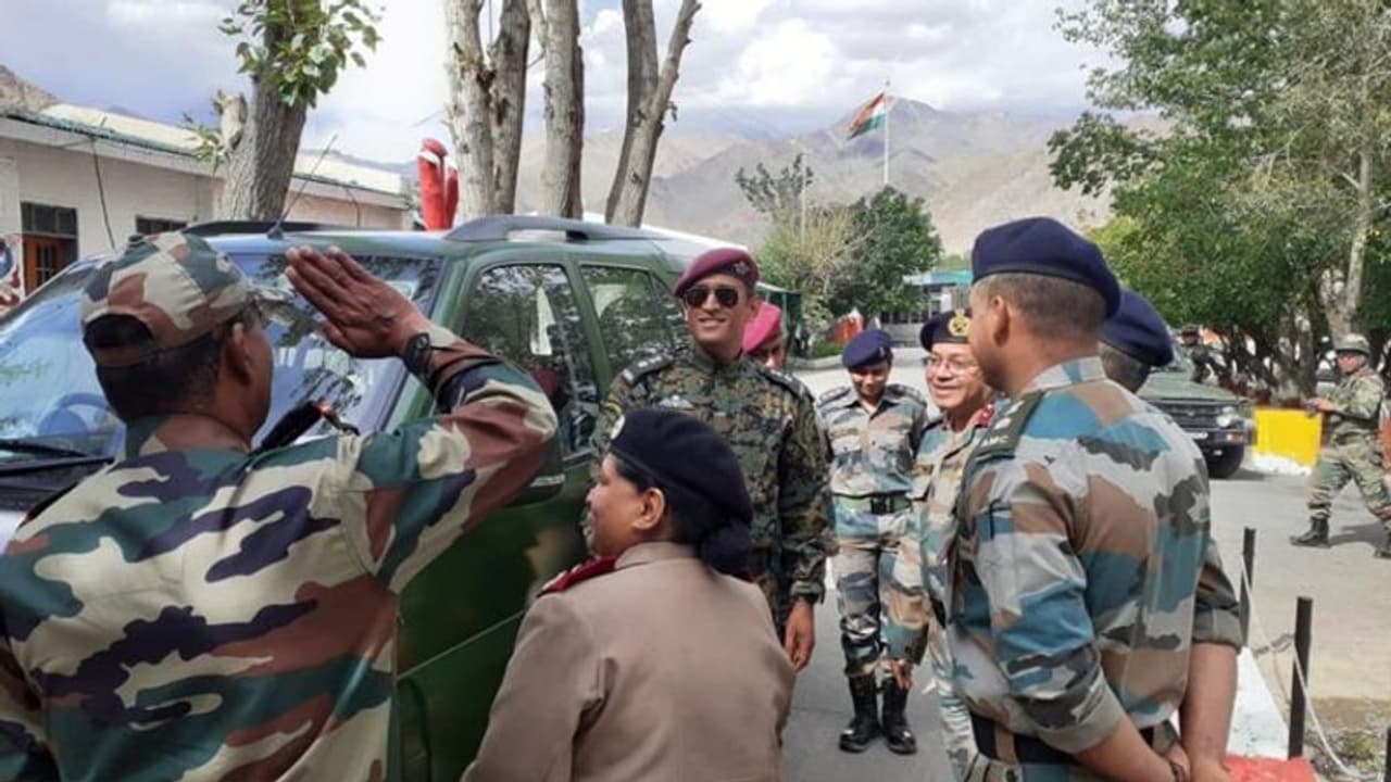 ராணுவத்தில் கவுரவ பதவி வகித்து வரும் தோனி இன்று லடாக்கில் இராணுவ வீரர்களுடன் சிறிது நேரம் கலந்துரையாடினார்.