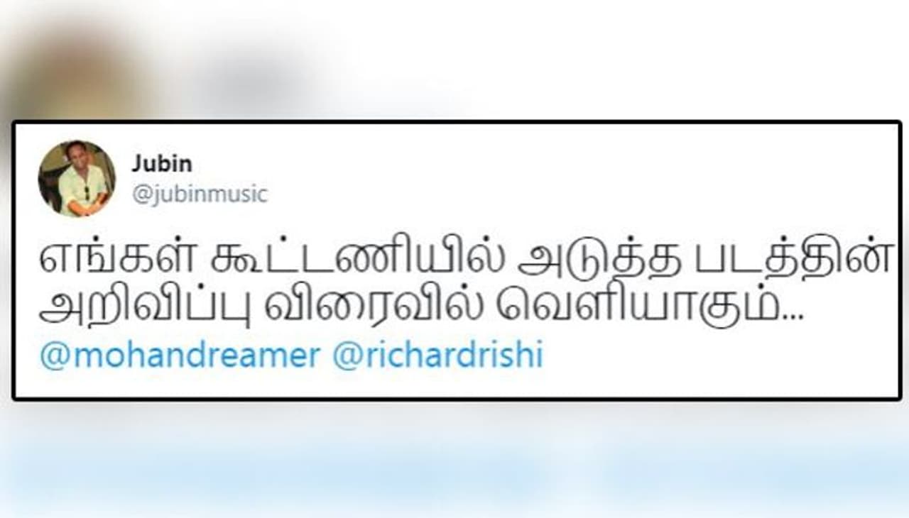 திரௌபதி படத்தின் கூட்டணி மீண்டும் இணைந்து அடுத்த படம் குறித்த அறிவிப்பை விரைவில் வெளியிடும் என திரௌபதி பட இசையமைப்பாளர் ஜூபின் தெரிவித்து உள்ளார்