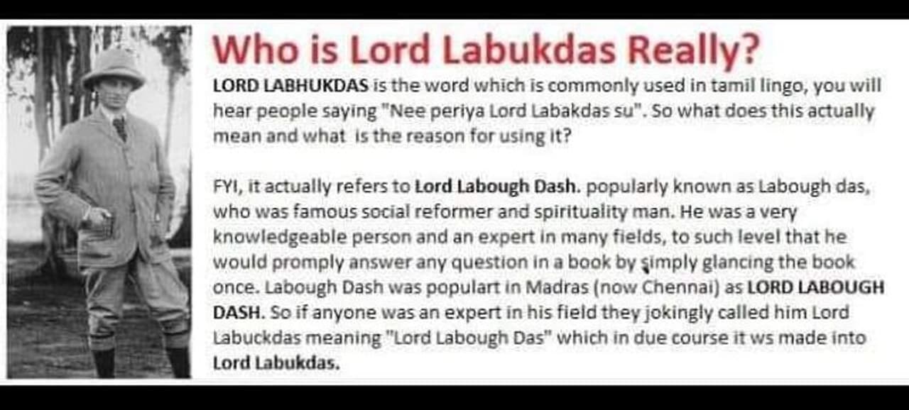 இப்படிப்பட்ட சிறப்பு பண்புகளை கொண்டிருந்த லார்ட் லபக்கு தாஸ் பற்றி சரிவர தெரியாமல் இன்றளவும் நாம் காமெடியாக பேசி விருதை காட்டிலும், உண்மையை தெரிந்துக்கொண்டு அவர்களுக்கு நன்றியை உரித்தாக்கலாம். அப்படிப்பட்ட லாடு லபக்கு தாஸ் குஜராத்தை சேர்ந்தவர்கள் என்பது குறிப்பிடத்தக்கது.