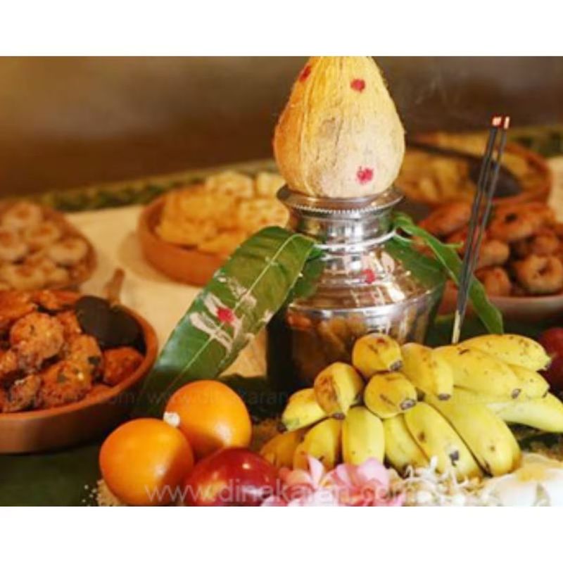 வீட்டை சுத்தம் செய்து, பூஜை அறையில் சுவாமி படங்களை துடைத்து வைத்து விட வேண்டும். முதல் நாள் இருவே ஒரு தட்டில் மா, பலா, வாழை ஆகிய முக்கனிகளை வைக்க வேண்டும். இது தவிர வேறு பழங்களும் வைக்கலாம். மேலும் இதோடு எலுமிச்சை பழம் வைக்க வேண்டும். வெற்றிலை, பாக்கு வைத்து, வீட்டில் இருக்கும் தங்க நகையும் வைக்க வேண்டும்.