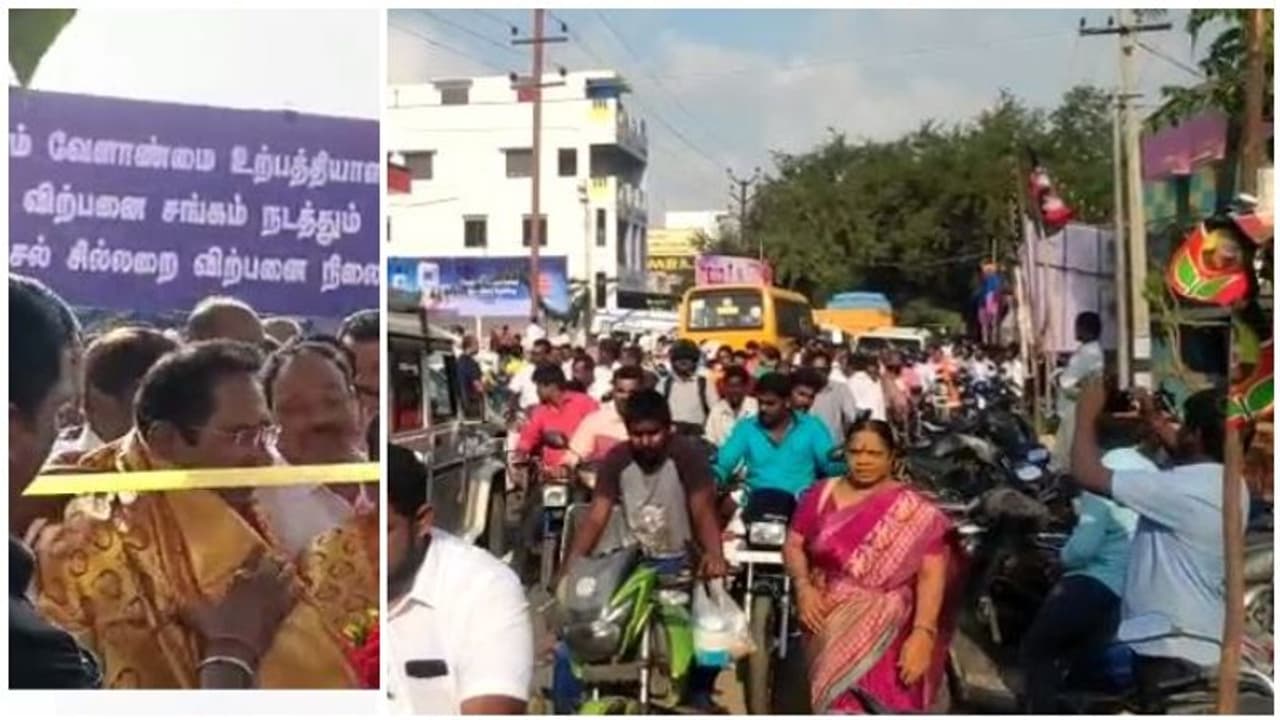 இந்த நிகழ்ச்சி இன்று காலை 8 மணி முதல் நடைபெற்றது. அமைச்சர் வருகையால், அமைச்சரை வரவேற்க வந்த அதிமுக தொண்டர்களின் வாகனங்கள் சாலைகளின் குறுக்கே ஆங்காங்கே நிறுத்தி விட்டு சென்றுவிட்டனர்.