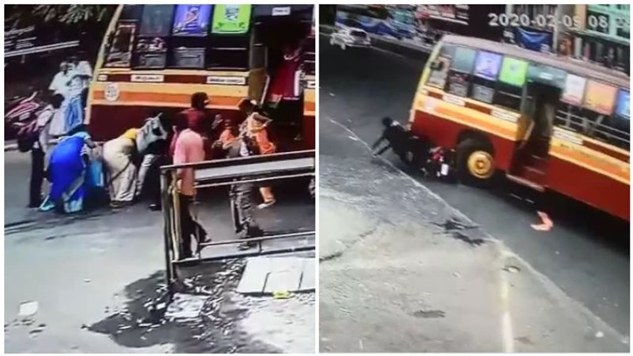 கோவை காந்திபுரத்தில் நகரப்பேருந்து ஒன்று கிராஸ்கட் சாலையில் இருந்து பேருந்து நிலையத்திற்குள் நுழைய வந்துகொண்டிருந்தது. அப்போது பேருந்தில் இடப்புறமாக இருசக்கர வாகனத்தில் வந்து கொண்டிருந்த இருவரும் எதிர்பாராதவிதமாக சக்கரத்தில் சிக்கி சிறிது தூரம் இழுத்துச் செல்லப்பட்டனர். ஆனால் இவர்கள் இருவரும் தலைக்கவசம் அணிந்து இருந்ததால் எந்தவித பெரிய ஆபத்தும் இல்லாமல் உயிர் பிழைத்தனர்.