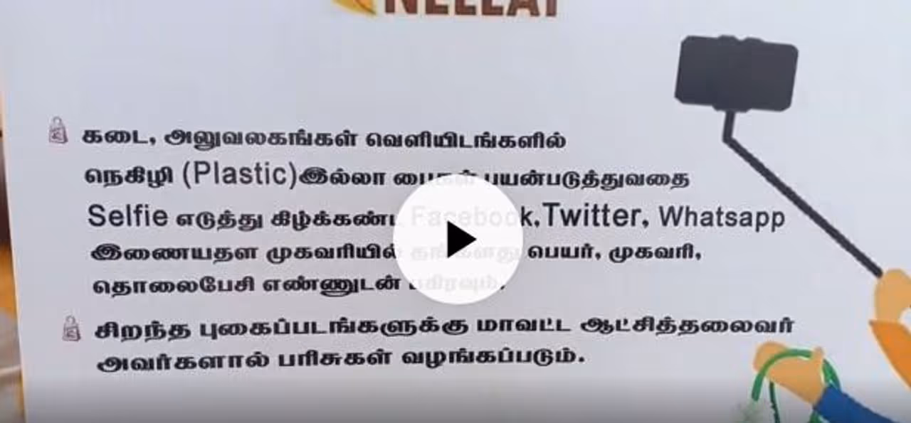 பிளாஸ்டிக் இல்லா நெல்லை மாவட்டம் உருவாக்க வேண்டும் என்பதற்காக துணி பையுடன் செல்ஃபி எடுத்து அனுப்பினால், அவர்களுக்கு பரிசு வழங்க உள்ளதாக மாவட்ட ஆட்சியர் ஷில்பா பிரபாகர் சதீஷ் புதிய அறிவிப்பு ஒன்றை வெளியிட்டு உள்ளார்.