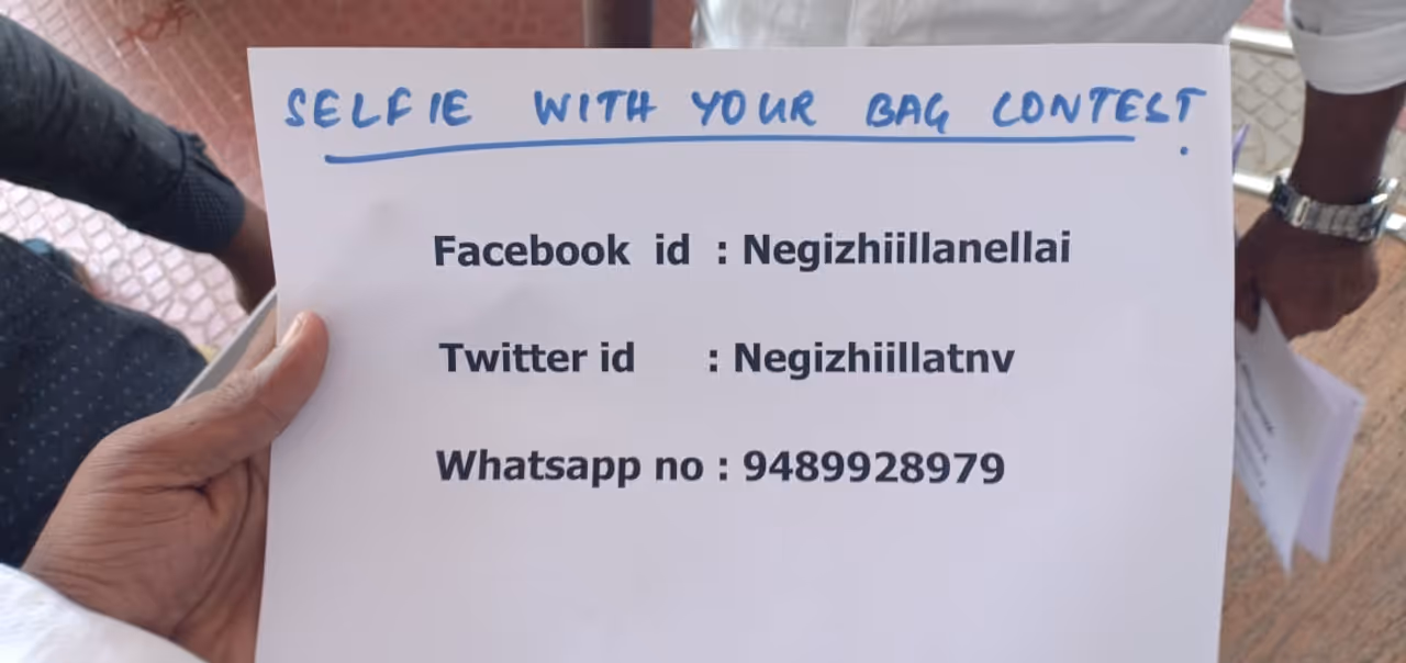 இந்த முகவரிக்கு ஆர்வத்துடன் செல்பி எடுத்து அனுப்பும், மிக சிறந்த விழிப்புணர்வு புகைப்படம் தேர்வு செய்யப்பட்டு, அவர்களுக்கு பரிசு வழங்க மாவட்ட ஆட்சியர் முடிவு செய்து ஊள்ளார். அதன்படி பல்வேறு தரப்பினர் தற்போது பிளாஸ்டிக் இல்லா துணி பையுடன் செல்பி எடுத்து அனுப்பிய வண்ணம் உள்ளனர்.