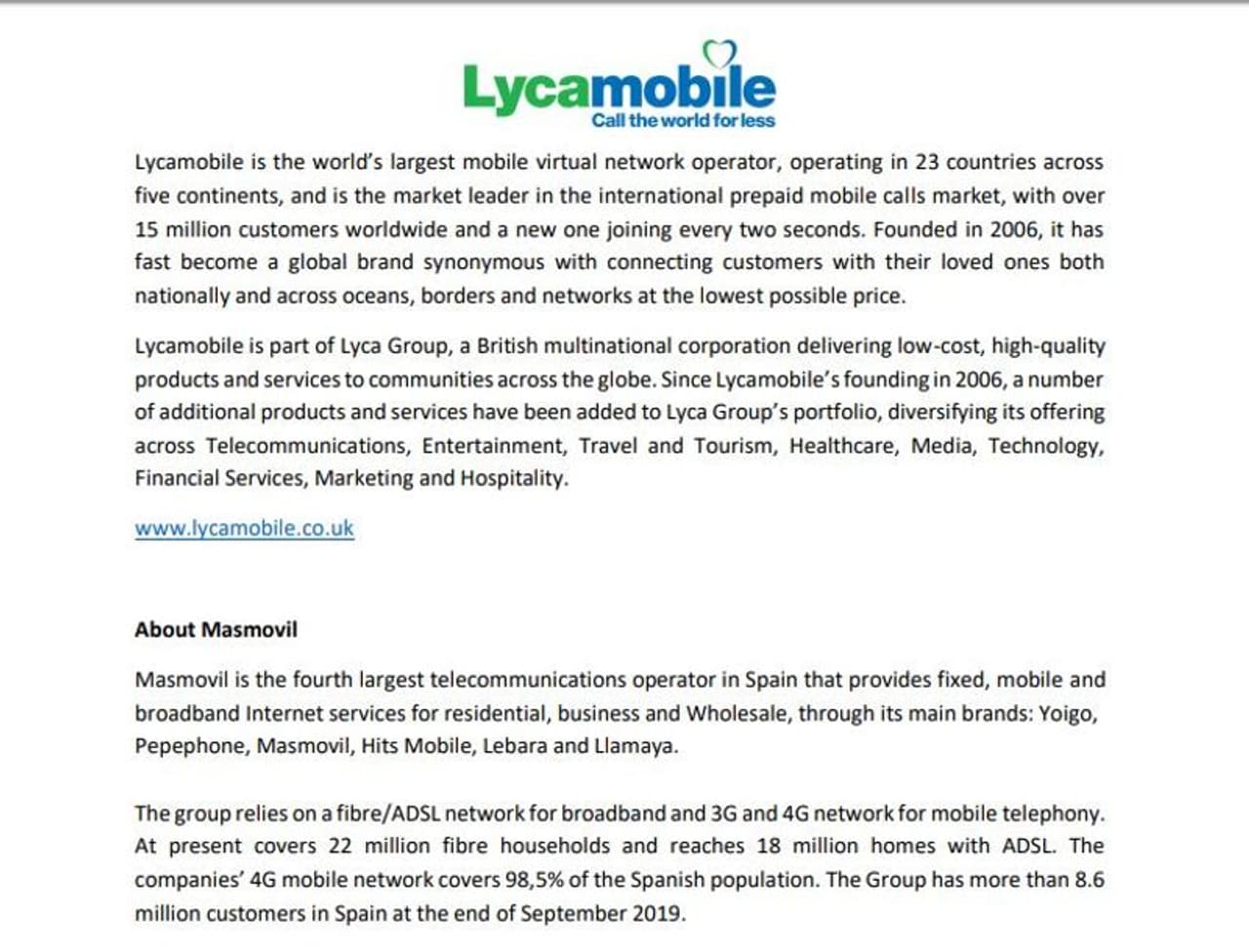 இதனைத்தொடர்ந்து ஸ்பெயின் நாட்டில் இயங்கிவந்த லைக்கா மொபைல் நிறுவனத்தில் பணிபுரிந்த ஊழியர்கள் அனைவருக்கும் நன்றியை தெரிவித்துக் கொண்டுள்ளது லைக்கா மொபைல் நிறுவனம். லைகா மொபைல் நிறுவனத்தின் இந்த சாதனையை உலக நாடுகள் உற்று நோக்குகிறது.
