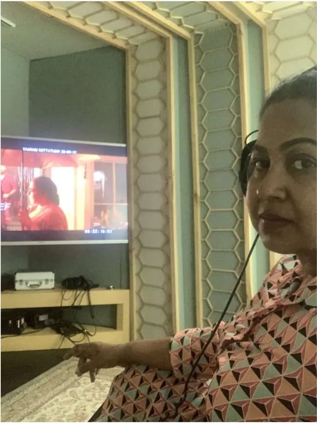 இந்த படத்திற்கு சித் ஸ்ரீராம் அர்ஜித் சிங் விஜய் பிரகாஷ் உள்ளிட்டோர் இசையமைத்துள்ளனர். இந்த படத்தின் டப்பிங் தற்போது விறுவிறுப்பாக நடைபெற்று வருகிறது. இந்த நிலையில் தன்னுடைய காட்சிக்கு டப்பிங் கொடுக்கும் வேலையில் மும்முரமாக இறங்கியுள்ளார் ராதிகா சரத்குமார். அப்போது எடுக்கப்பட்ட புகைப்படம் உங்களுக்காக......