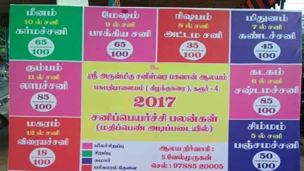சனி பெயர்ச்சி நேற்று முன்தினம்,டிசம்பர் 19 ஆம் தேதி நடைபெற்றது.இந்த சனிபெயர்ச்சி மூலம், 3 வருடங்கள்(2020 வரை) எந்தெந்த ராசிக்காரர்களுக்கு, எப்படி அமையும் என்பதை சுருக்கமாக பார்க்கலாம்.
