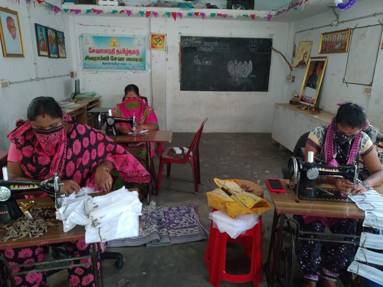 அரசு உதவியுடன், இந்தியன் ஓவர்சீஸ் வங்கியில் முத்ரா லோன் திட்டத்தில் வங்கிக்கடன் பெற்று, 20 தையல் மெஷின் பெறப்பட்டு மாஸ்க் தயாரிக்கும் பணியில் ஈடுபடுத்தப்பட்டு உள்ளனர். இதன் மூலம் ஒரு நாளைக்கு குறைந்தது 5 ஆயிரம் முதல் 50 ஆயிரம் வரை முகக்கவசம் தயாரிக்கப்பட்டு பொதுமக்களுக்கு விநியோகித்து வருகிறது.இந்த சேவையால், வறுமையில் இருக்கும் பெண்கள் வேலை வாய்ப்பு பெற்று பயனடைந்து வருவதுடன் சுயமாக தொழில் செய்யும் வாய்ப்பையும் பெற்று உள்ளனர்.