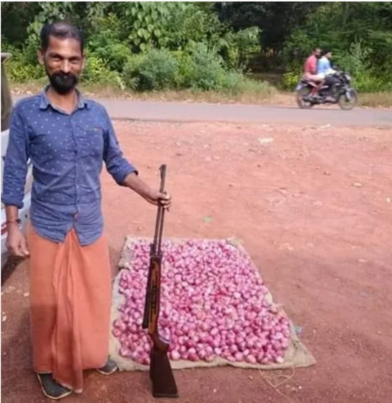 வெங்காயத்தின் விலை தொடர்ந்து ஏற்றம் கண்டு வருவதால் துப்பாக்கி ஏந்திய பாதுகாப்புடன் வெங்காயத்தை வெயிலில் வைத்து காய வைப்பது போன்று எடுக்கப்பட்ட புகைப்படம் சமூக வலைத்தளத்தில் வைரலாக பரவி வருகிறது.