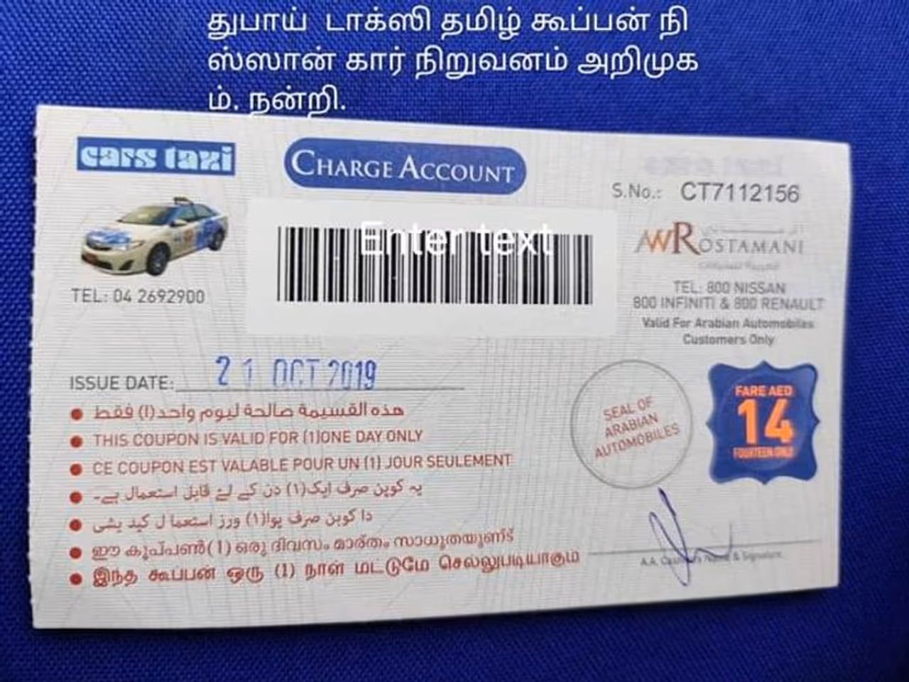 மேலும் துபாய் என்றாலே... வர்த்தக ரீதியாகவும், சுற்றுப்பயணம் மேற்கொள்ளவும் பல நாடுகளில் இருந்து அங்கு வருகை புரிகிறார்கள்.. அவர்களுக்கு ஏதுவாக துபாயில் கார் டாக்சி கூப்பனில் பல மொழிகள் இடம் பெற்று உள்ளது. மற்ற நாடுகளில் இருந்து வருபவர்களுக்கு தமிழ் மொழி சேர்க்கப்பட்டடுள்ளதற்கு அங்கு வாழும் தமிழக மக்கள் வரவேற்பு தெரிவித்து உள்ளனர்.