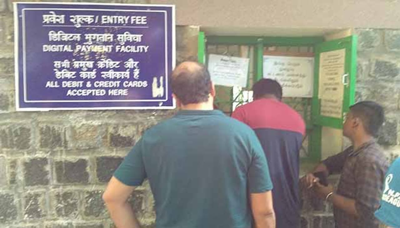 இதில் டிஜிட்டல் இந்தியா திட்டத்தை ஊக்குவிக்கும் பொருட்டு ஆன்லைன் வழியாக பணத்தை செலுத்தினால் உள்நாட்டவருக்கு ஐந்து ரூபாய் தள்ளுபடியும், வெளிநாட்டவருக்கு 50 ரூபாய் தள்ளுபடியும் அறிவித்து உள்ளது. இது தொடர்பான அறிவிப்பு பலகையும் அங்கு வைத்துள்ளது தொல்லியல்துறை. இதில் என்ன ஒரு முக்கிய விஷயமெனன்றால் டிக்கெட் கவுண்டர் அருகே உள்ள அறிவிப்பு பலகையில் தமிழ் எழுத்துக்களே இல்லையாம். இதற்கு கடும் எதிர்ப்பு தெரிவித்து வருகின்றனர் தமிழ் மக்கள். மேலும் அறிவிப்பு பலகையில் தமிழ் இடம் பெற வேண்டும் என கோரிக்கை வைத்துள்ளனர் என்பது குறிப்பிடத்தக்கது.