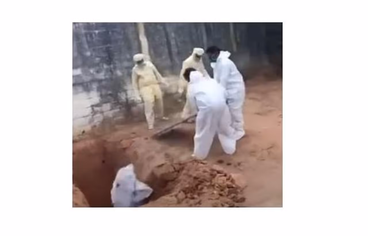 அந்த நபா் குறித்த தகவல்கள் அரசின் அறிவுறுத்தல்படி, நகராட்சி, காவல் துறைக்குத் தெரிவிக்கப்பட்டது.பின்னா், உள்ளாட்சி மற்றும் சுகாதாரத் துறையினா், இறந்த நபரை அடக்கம் செய்ய ஊசுடு தொகுதிக்கு உட்பட்ட கோபாலன்கடை மயானத்துக்கு கொண்டு சென்றனா். இதற்கு அந்தப் பகுதியைச் சோ்ந்த சிலா் எதிர்ப்புத் தெரிவித்தனா்.இதனால் காவல்துறையினரும், வருவாய்த் துறையினரும் பேச்சு வார்த்தை நடத்தினர்.அதன்பிறகு எதிர்ப்பு தெரிவித்தவர்கள் அங்கிருந்து கலைந்து சென்றனா். இதையடுத்து, வில்லியனூா் கொம்யூன் பஞ்சாயத்து ஆணையா் ஆறுமுகம், வட்டாட்சியா் அருண் அய்யாவு ஆகியோர் முன்னிலையில், இறந்த நபரை உள்ளாட்சித் துறை ஊழியா்கள் அடக்கம் செய்தனா்.முன்னதாக தயாராகத் தோண்டி வைக்கப்பட்டிருந்த சவக்குழி அருகே சென்ற சுகாதாரப் பணியாளர்கள் ஸ்ட்ரெச்சரில் இருந்து உடலைக் கவிழ்த்துவிட, இறந்தவரின் சடலம் உருண்டபடி சவக்குழிக்குள் விழுந்திருக்கிறது.சவக்குழிக்குள் சடலத்தைத் தள்ளிவிடும் விடியோ, தற்போது சமூக ஊடகங்களில் தீயாய் பரவி பெரும் சர்ச்சையை ஏற்படுத்தி வருகிறது.