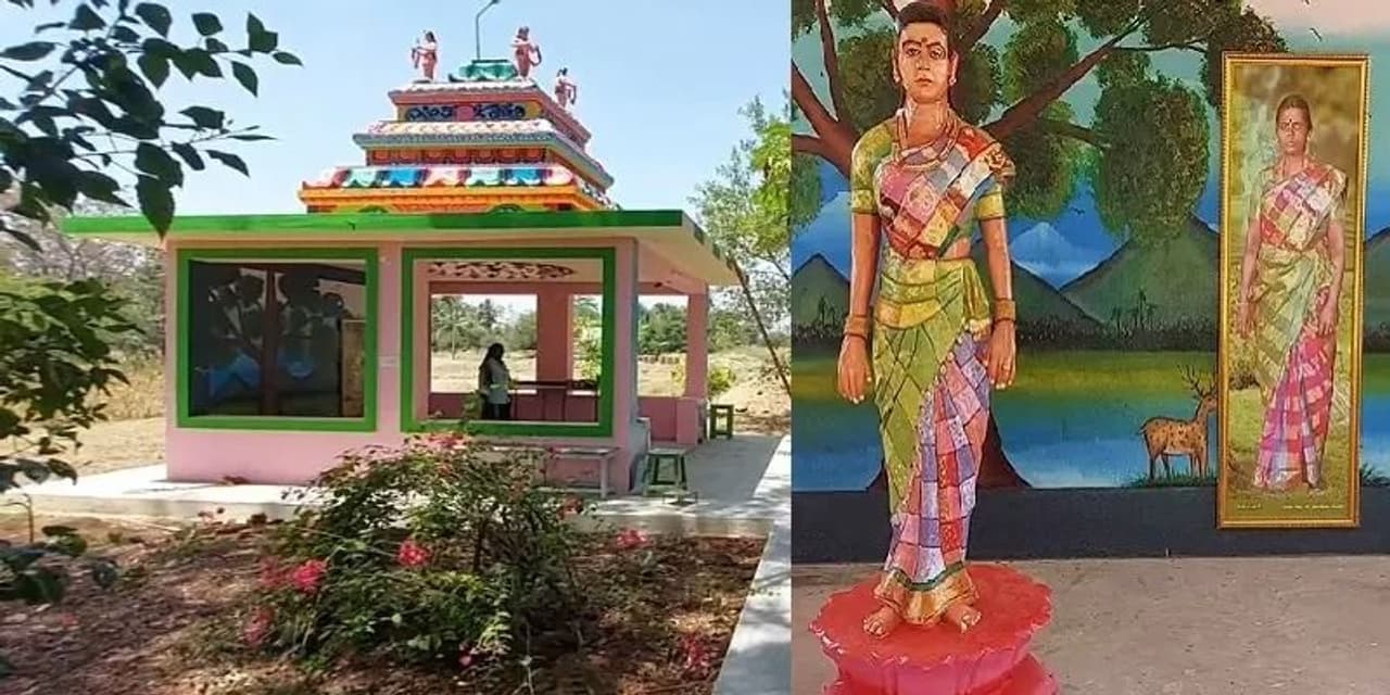 இந்த நிலையில் சென்ற வருடம் சுப்பிரமணியின் மனைவி ஈஸ்வரி மரணம் அடைந்தார். மனைவி இறந்ததால் வேதனையடைந்த சுப்பிரமணி மனைவி நினைவாக கோயில் கட்ட முடிவு செய்தார். இதற்காக 15 சென்ட் சொந்தமான நிலத்தில் 15 லட்ச ரூபாய் செலவிட்டு கோயில் கட்டியுள்ளார்.