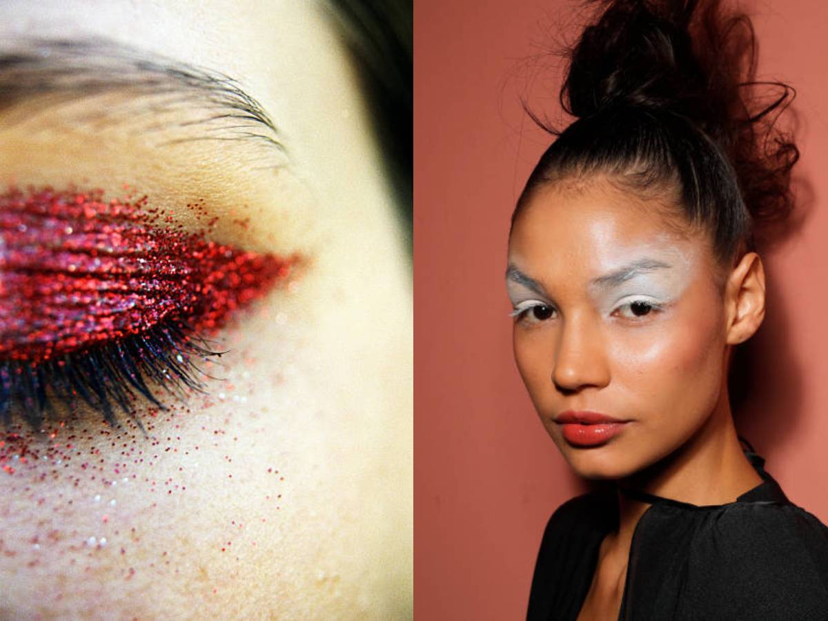 கண்களை Shimmer Eyeshadow கொண்டு அடிப்படை தயாரிக்க வேண்டும். அதன்பிறகு, சிறிய Crystal Stones அல்லது Rhinestones ஐ கண்களுக்குத் தகுந்த இடங்களில் ஒட்ட வேண்டும். இதை டிரமாட்டிக் ஐ லுக்குடன் சேர்த்தால் செம்ம கிளாமரான தோற்றம் கிடைக்கும். வெள்ளை கிரிஸ்டல் – மின்னும் பார்வை, ரோஸ் கோல்டு ஸ்டோன்ஸ் – மென்மையான அழகு, ப்ளூ அண்ட் பிங்க் கிரிஸ்டல்கள் – சினிமா ஸ்டைல் ஆகியவற்றிற்கு ஏற்றதாக இருக்கும்.