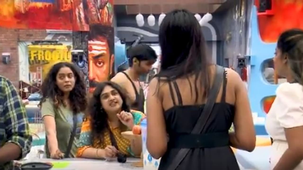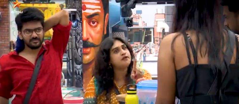 பிக்பாஸ் நிகழ்ச்சியில் மூன்றாவது நாள் நிகழ்வுகளை நேற்று ஒளிபரப்பப்பட்டது. அதில் வனிதா விஜயகுமாரின் பேச்சு அனல் பறக்கும் விதத்தில் அமைந்திருந்தது. காரணம் பிக் பாஸ் வீட்டில் பயன்படுத்திய கப்பை யாரோ ஒருவர் சுத்தம் செய்யாமல் டேபிள் மீது வைத்து உள்ளனர். யார் இதை இப்படி செய்தார்கள்..? ஏன் எடுத்து சுத்தம் பண்ண வில்லை? என அபிராமி தொடர்ந்து கத்திக்கொண்டே கேள்வி கேட்கிறார். அதற்கு பதிலளிக்கும் விதமாக மீரா மிதுன் calm down, calm down என சொல்கிறார். இதற்கு அபிராமி, "நான் உன்னிடம் கேட்கவில்லை... பொதுவாக தான் சொன்னேன்.. நீ எதற்கு மூக்கை நுழைக்கிறாய்" என கோபப்பட்டு இருவரும் பேசிக் கொள்கின்றனர்.