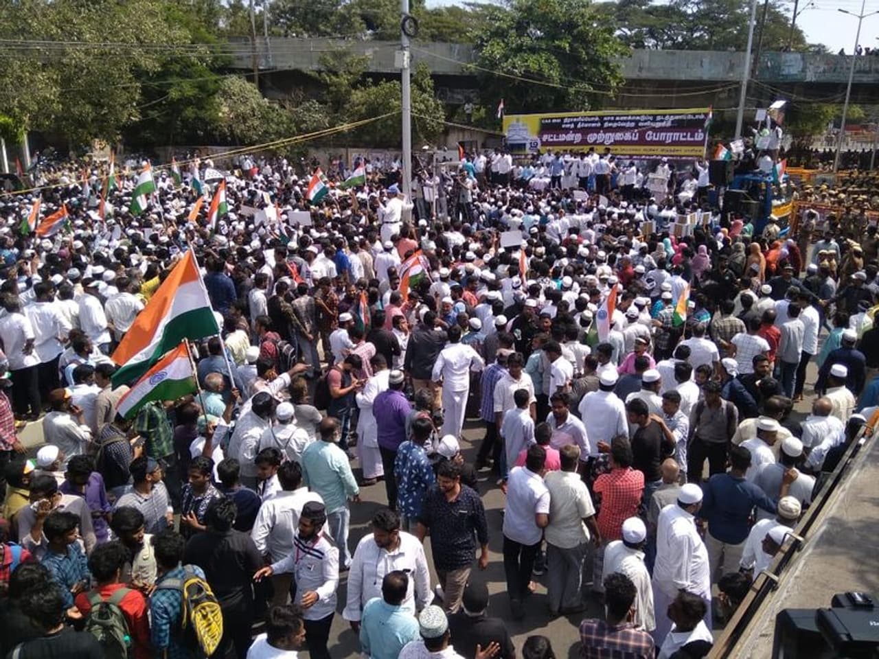 குடியுரிமை திருத்த சட்டத்திற்கு எதிராக இஸ்லாமிய அமைப்புகளை சேர்ந்தவர்கள் சென்னை சேப்பாக்கத்தில் திரளாக திரண்டு தங்களது எதிர்ப்பை தெரிவித்து வருகின்றனர்.