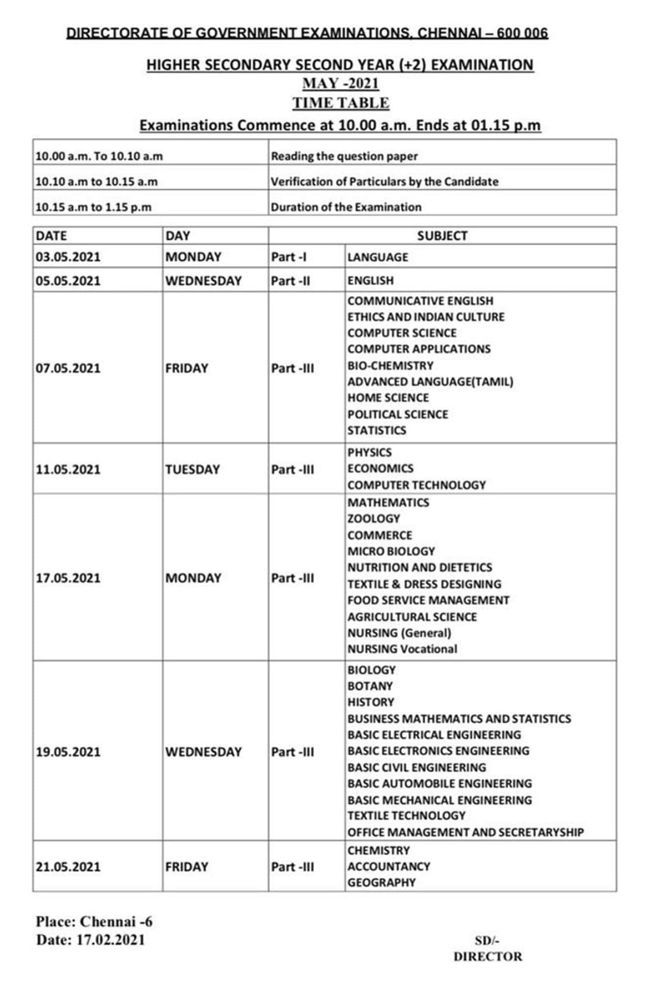 பிளஸ் 2 தேர்வுக்கான அட்டவணை