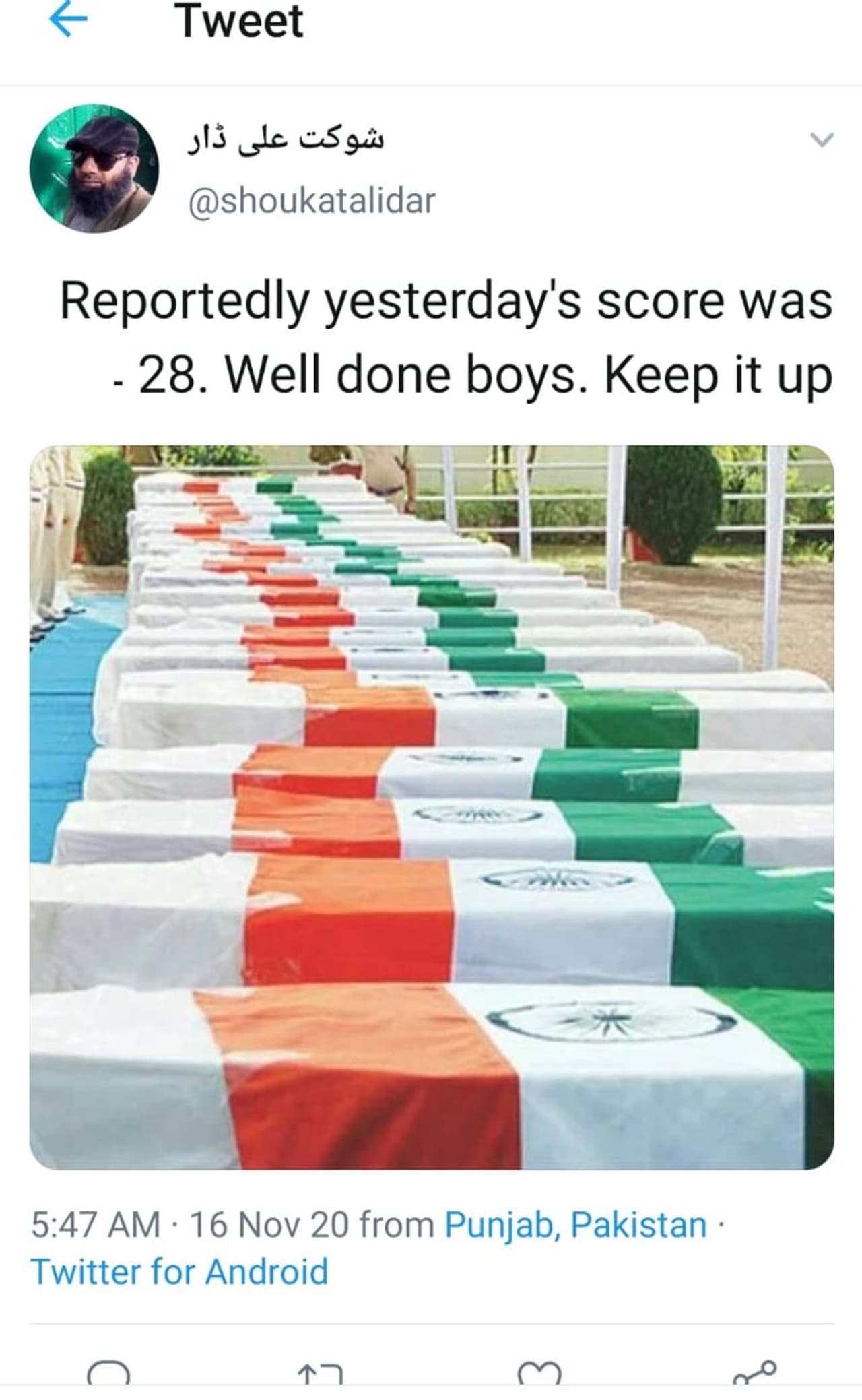 ஆனால் பாகிஸ்தான் நாட்டைச் சேர்ந்தவர்கள் திட்டமிட்டே 28 இந்திய வீரர்கள் கொல்லப்பட்டதாக சமூக வளைதளத்தில் பொய் பிரச்சாரம் செய்து வருவது அம்பலமாகி உள்ளது.