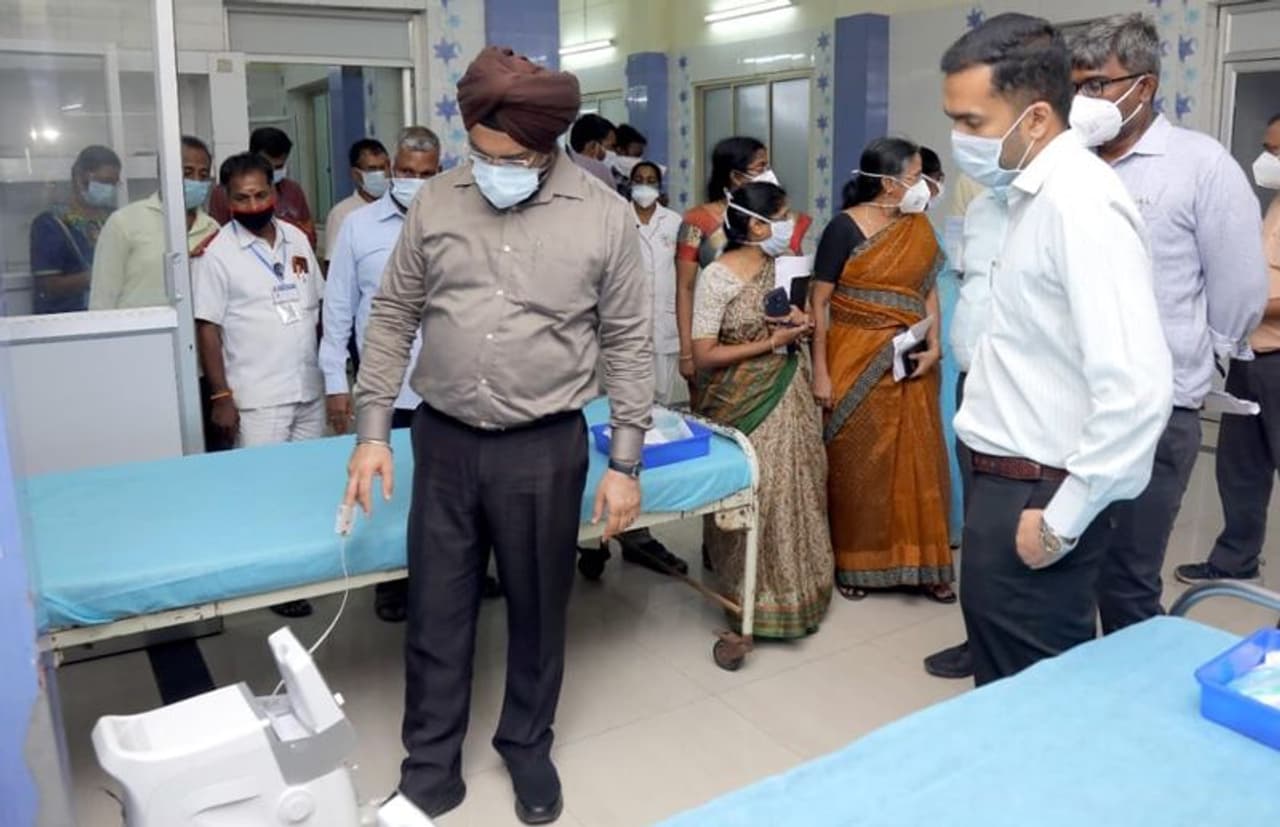 சென்னை மாநகராட்சியால் மருத்துவமனைகளுக்கு வழங்கப்பட்ட ஆக்சிஜன் செறியூட்டிகளின் செயல்பாட்டினை முதன்மை செயலாளர் மற்றும் பெருநகர சென்னை மாநகராட்சி ஆணையர் ககன்தீப்சிங் பேடி ஆய்வு செய்தார்.