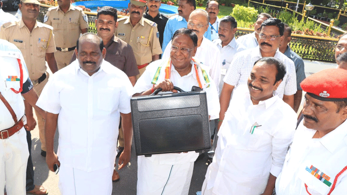நாடாளுமன்ற தேர்தல் காரணமாக கடந்த மார்ச் மாதம் புதுச்சேரியில் இடைக்கால பட்ஜெட் மட்டுமே தாக்கல் செய்யப்பட்டது. இந்நிலையில், புதுச்சேரியில் நிதித்துறை பொறுப்பை வகித்து வரும் முதல்வர் நாராயணசாமி, சட்டப்பேரவையில் இன்று 2019-2020-ம் ஆண்டுக்கான முழு பட்ஜெட்டை தாக்கல் செய்தார்.