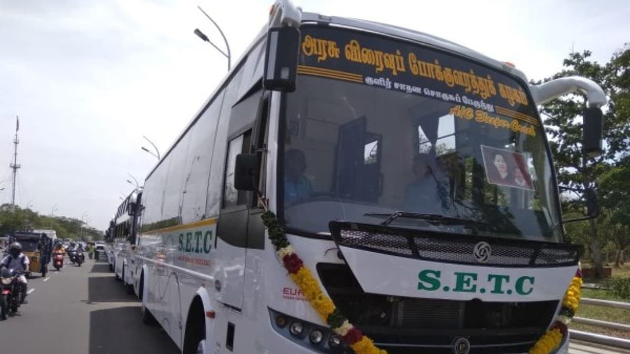 தமிழ்நாட்டில் முதன் முறையாக பயோ டாய்லெட் மற்றும் படுக்கை வசதியுடன் கூடிய நவீன பேருந்து சேவை இன்று தொடங்கி வைக்கப்பட்டது. இதனை முதலமைச்சர் எடப்பாடி பழனிசாமி, கொடி அசைத்து துவக்கி வைத்தார். ரூ.134 கோடி ரூபாய் செலவில் 515 புதிய குளிர்சாதன பேருந்துகள் இன்று முதல் பயன்பாட்டுக்கு வந்தன.