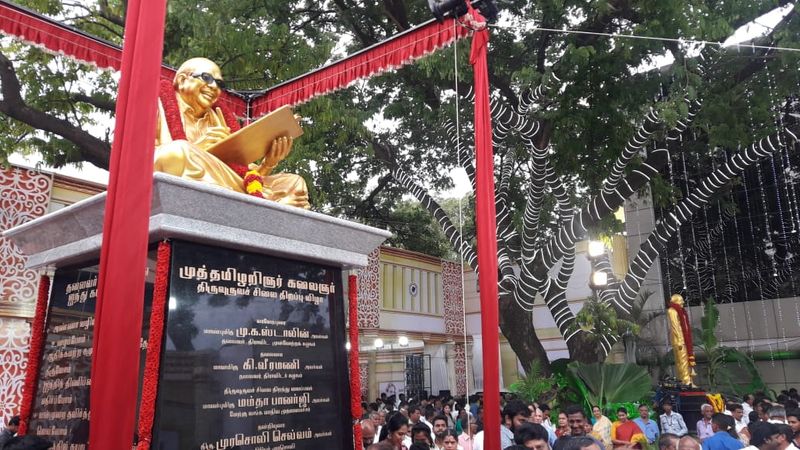 கலைஞர் கருணாநிதி இறந்து இன்றுடன் ஓராண்டு நிறைவு பெற்றதையொட்டி,கலைஞரின் சிலையை சென்னை கோடம்பாக்கம் முரசொலி அலுவலகத்தில் திறந்து வைக்கப்பட்டது.