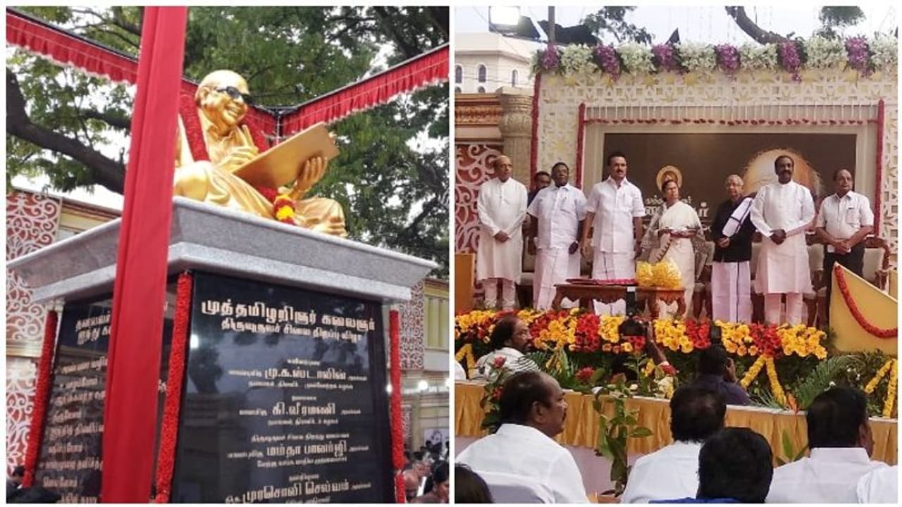 6.5 அடி உயரத்தில் அமர்ந்த நிலையில் காட்சி அளிக்கிறார் கலைஞர். இந்த நிகழ்வில் கவிப்பேரரசு வைரமுத்து திமுக நிர்வாகிகள், தோழமை கட்சி தலைவர்கள் என அனைவரும் பங்கேற்றனர்.