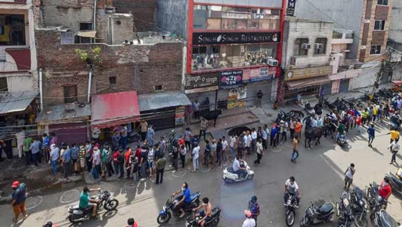 பொதுமுடக்கத்தில் தளர்வுகள் அளிக்கப்பட்ட நிலையில், டெல்லியில் 150 மதுக்கடைகள் இயங்குவதற்கு அனுமதி அளிக்கப்பட்டது. 40 நாட்களுக்கு பிறகு கடைகள் திறக்கப்பட்டதால், மதுபிரியர்கள் கடைகள் முன்பு குவிந்தனர். முகக் கவசங்கள் அணியாமலும் தனிமனித இடைவெளியை பின்பற்றாமலும் நூற்றுக்கணக்கானோர் வீதிகளில் குவிந்தனர். 70 சதவிகிதம் கொரோனா சிறப்பு வரி விதிக்கப்பட்ட போதிலும் மதுபிரியர்களின் கூட்டம் அலைமோதியது.