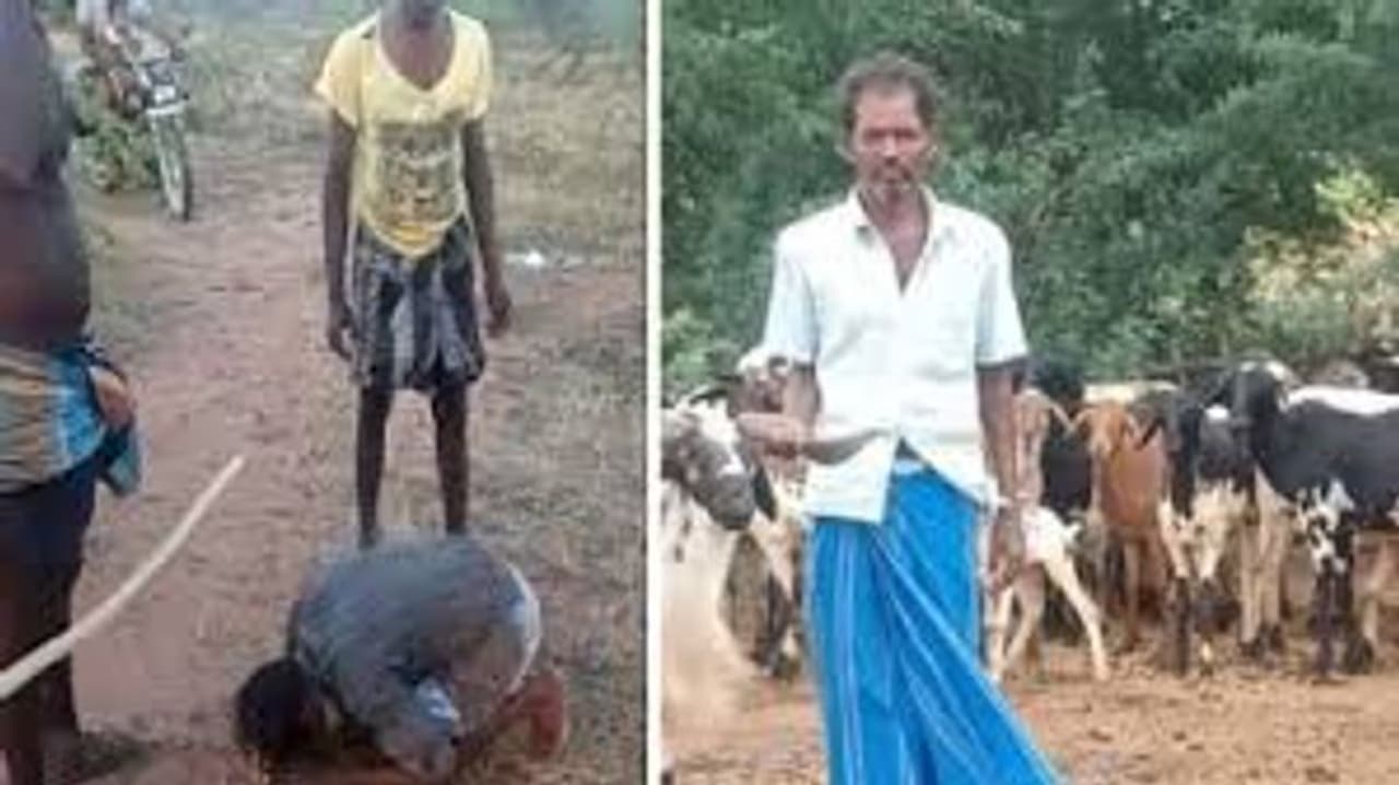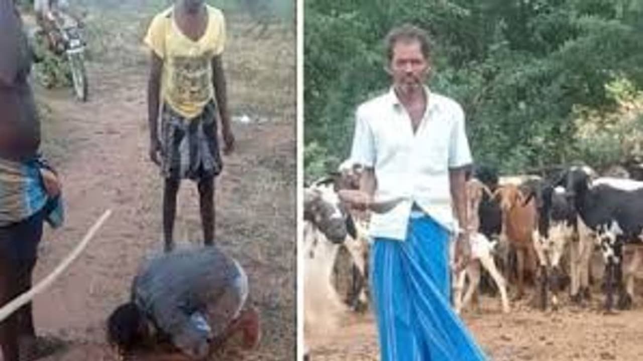 வடமாநிலங்களைப்போல் தமிழகத்தில் ஆடு மேய்க்கும் தொழிலாளியை, காலில் விழுந்து மன்னிப்பு கேட்க செய்த சம்பவம் பரபரப்பானது.இந்த சம்பவத்தில் ஈடுபட்ட 8பேரை போலீசார் கைது செய்திருக்கிறார்கள்.