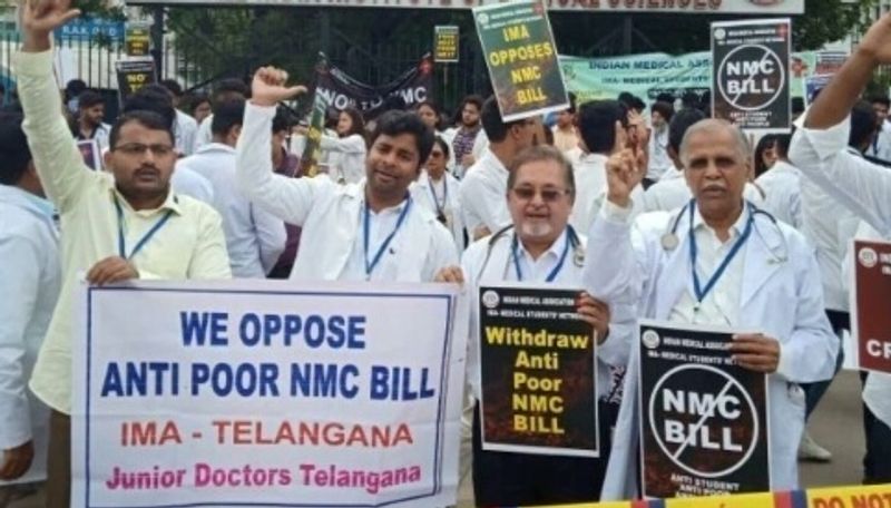 இந்த புதிய ஆணையம் அரசு மருத்துவக் கல்லூரியில் படிக்கும் மாணவர்களை விட தனியாருக்கே சாதகமாக அமைந்துள்ளது. எனவே, பாஜக அரசின் இந்த தேசிய மருத்துவ ஆணைய மசோதாவை எதிர்த்து டெல்லி எய்ம்ஸ் மருத்துவமனை முன்பு மருத்துவர்கள் முற்றுகையிட்டு போராட்டத்தில் ஈடுபட்டனர்.