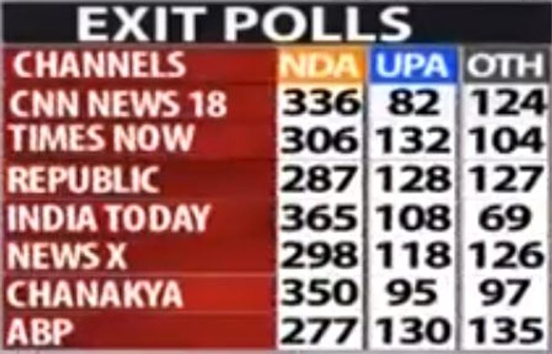 நாடாளுமன்றத் தேர்தல் நேற்றோரு முடிந்துவிட்டது. மே 23 அன்று தேர்தல் முடிவுகள் வெளியாக உள்ளன. தேர்தல் நிறைவு பெற்றதையடுத்து வாக்குப்பதிவுக்கு பிந்தைய கருத்துக்கணிப்புகள் நேற்று மாலை வெளியாகின. இந்தக் கருத்துக்கணிப்புகளில் பாஜக கூட்டணி மீண்டும் ஆட்சியைத் தக்க வைக்கும் என்று தெரிவிக்கப்பட்டுள்ளது. காங்கிரஸ் உள்ளிட்ட எதிர்க்கட்சிகள் தோல்வியடையும் என்று கருத்துக்கணிப்பு முடிவுகள் தெரிவிக்கின்றன.