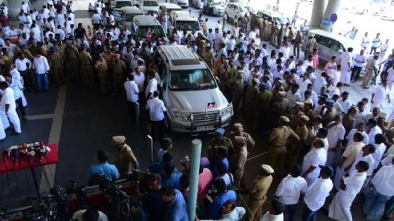 தொண்டர்கள், கட்சி நிர்வாகிகளின் கூட்டத்தை சமாளிக்க 100 க்கும் மேற்பட்ட போலீசார் குவிக்கப்பட்டுள்ளனர்.