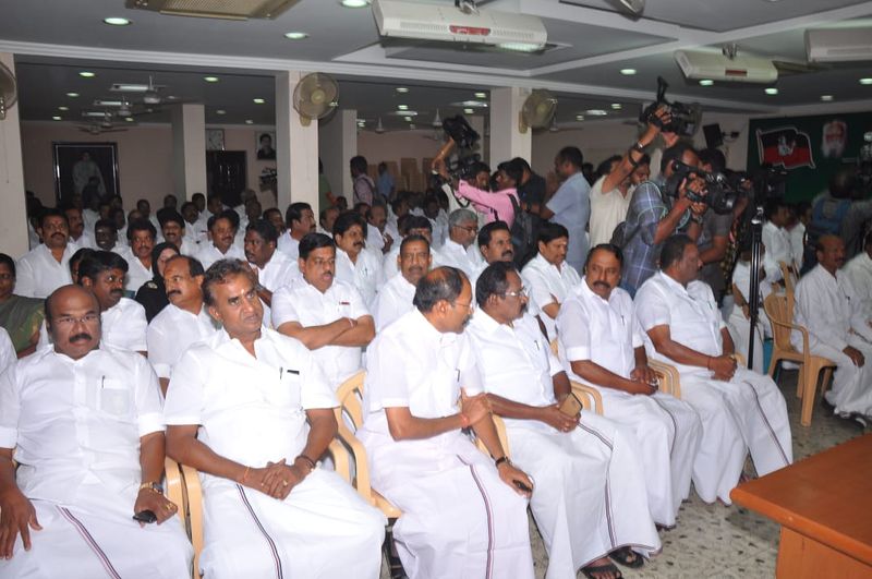 இந்நிலையில், அதிமுக ஒருங்கிணைப்பாளர் பன்னீர்செல்வம், இணை ஒருங்கிணைப்பாளர் பழனிசாமி தலைமையில் மாவட்ட செயலாளர்கள் கூட்டம் தொடங்கியது, ராயப்பேட்டையில் உள்ள அதிமுக தலைமை அலுவலகத்தில் நடைபெற்று வரும் கூட்டத்தில் மாவட்ட செயலாளர்கள் மற்றும் எம்.பி.க்கள், அமைச்சர்கள், எம்எல்ஏக்கள் பங்கேற்றுள்ளனர்.