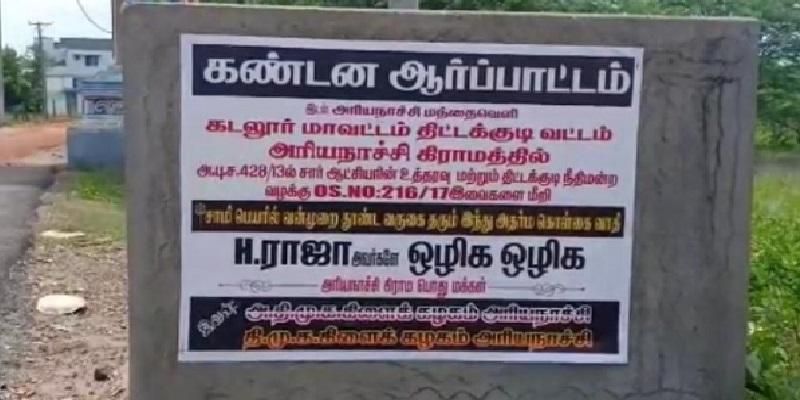 அரியநாச்சி கிராமத்தில் கோயில் தொடர்பான வழக்கு நீதிமன்றத்தில் நிலுவையில் இருண்டுவருவதால், ஹெச்.ராஜாவின் வருகை தேவையில்லாமல் பதற்றத்தை ஏற்படுத்தும் என்பதால், கட்சி வேறுபாட்டைத் தாண்டி போஸ்டர் ஒட்டப்பட்டதாக கூறப்படுகிறது.