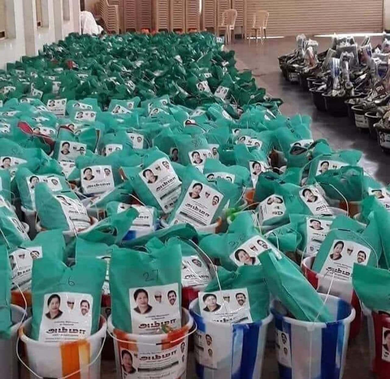 பல ஆயிரக்கணக்கான ஸ்டிக்கர்களை தயார் செய்து வைத்துள்ளனர் அதிமுகவினர். தன்னார்வ நிறுவனங்களிடம் இருந்து பிடுங்கப்படும் உணவு பொருட்களில் முதல்வரின் படம் போட்ட 'ஸ்டிக்கர்களை உணவு பொட்டலங்கள் உள்ளிட்ட பொருட்கள் மீது ஒட்டி வழங்கிய கூத்து அரங்கேறியது.