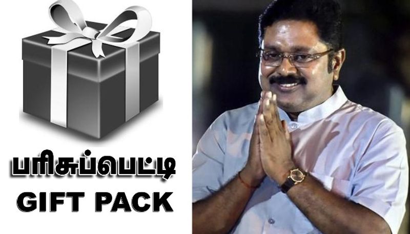 இதுதொடர்பாக அதிமுக செய்தி தொடர்பாளர் பாபு முருகவேல் மற்றும் வழக்கறிஞர்கள் தமிழக தலைமை தேர்தல் அதிகாரியிடம் புகார் மனு அளித்தனர். அந்த மனுவில், “உச்ச நீதிமன்ற வழிகாட்டுதல்படி தினகரன் தரப்புக்கு பரிசுப் பெட்டி சின்னத்தை தேர்தல் ஆணையம் ஒதுக்கியுள்ளது. அமமுகவுக்கு ஒதுக்கப்பட்ட சின்னத்தை தேர்தல் நடத்தை விதிகளுக்கு மாறாக அட்டை பெட்டியில் செய்து பிரசாரம் செய்கிறார்கள். பரிசுப் பெட்டிக்குள் வாக்காளர்களுக்கு பரிசுப் பொருட்களை வைத்து மாநிலம் முழுவதும் வினியோகம் செய்கின்றனர்.